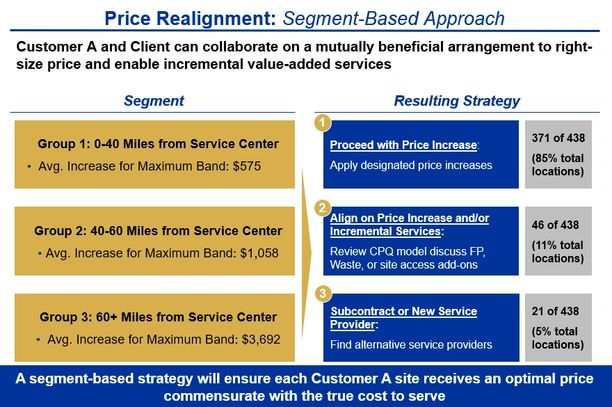 3. Review Tiered Pricing with your Customer: after exhausting the subcontracting option, if problematic sites still exist, prepare materials for a key customer discussion. If your customer remains vigilant in maintaining a simplified pricing scheme, consider tiered pricing. Again, you can utilize the relevant criteria (see figure 3) to create the segments and reduce the subsidizing issues, although not eliminating it completely.